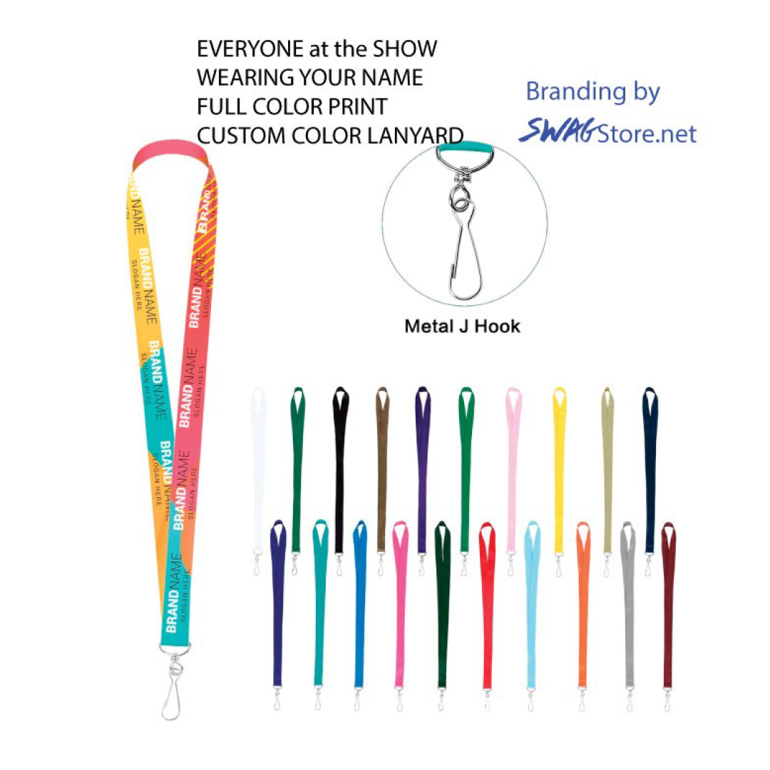 This polyester lanyard is 36″ x 3/4″ and has a J-hook at the end to make it easy to attach other items as needed. The dye sublimation could do full color unlimited print logo on lanyard. your design full color logo on these for a convenient handout at your next event. 3/4″ W x 36″ L