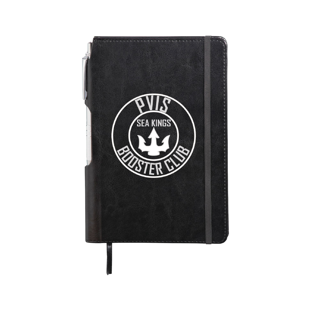 comes with an aluminum ballpoint pen and spine pen slot. Note that a pen imprint is not available