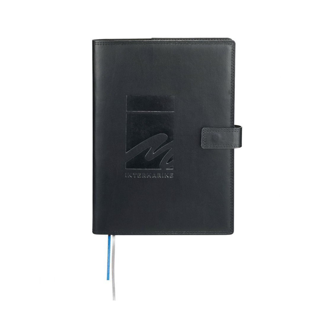 features a genuine premier leather hard cover with a double-stitched border. This sophisticated