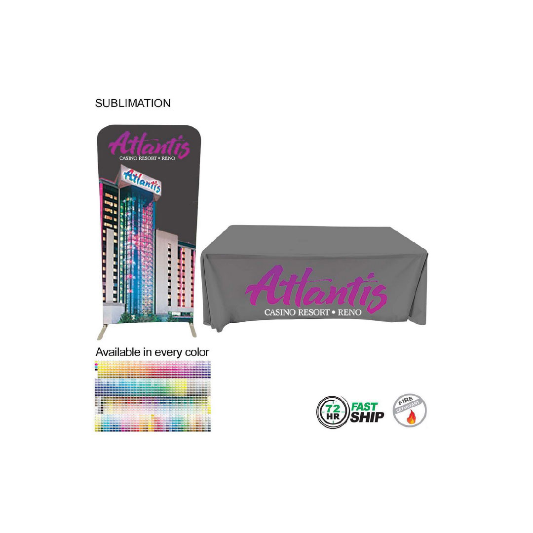 Wall Display Kit (SU731) and PREMIUM 6′ Sublimated Tablecloth open back (SU799). Use this
