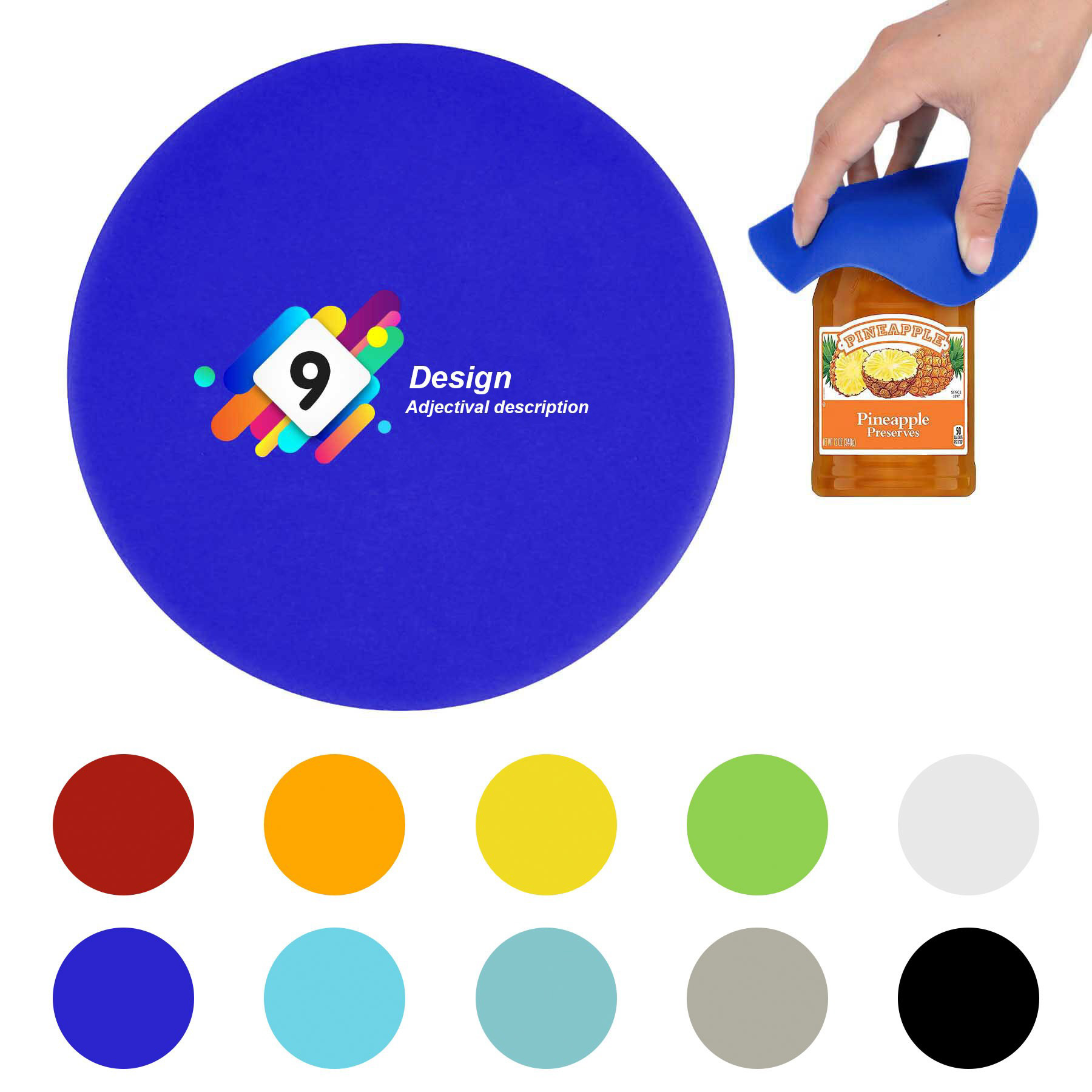 This round jar opener is made out of silicone with the 5” diameter. It has multi function such as