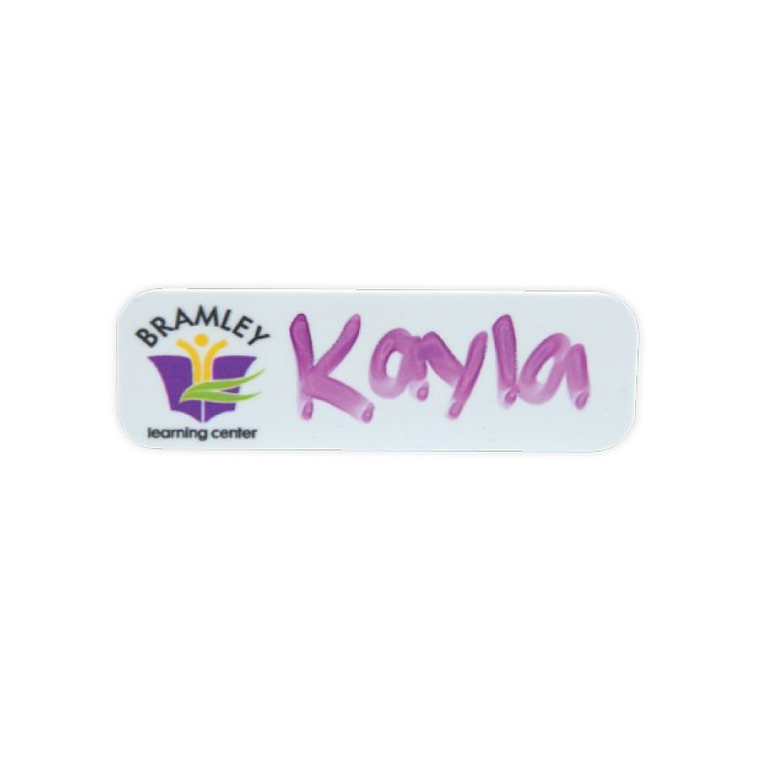 reusable name badges.Additional details include: 3″ x 1 ” horizontal orientation. 1/16″ matte white
