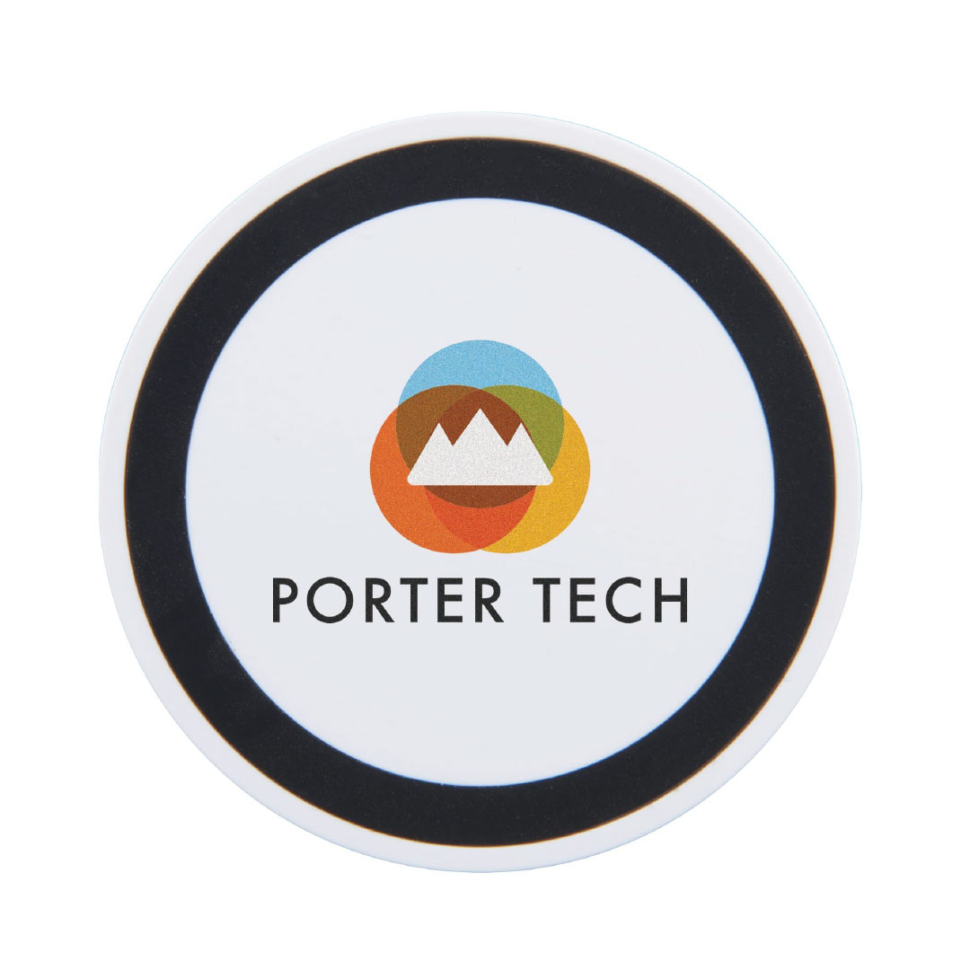 wireless technology. The round charging pad is constructed from durable double-wall plastic and is